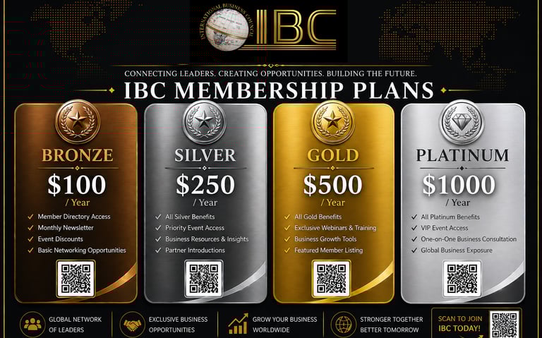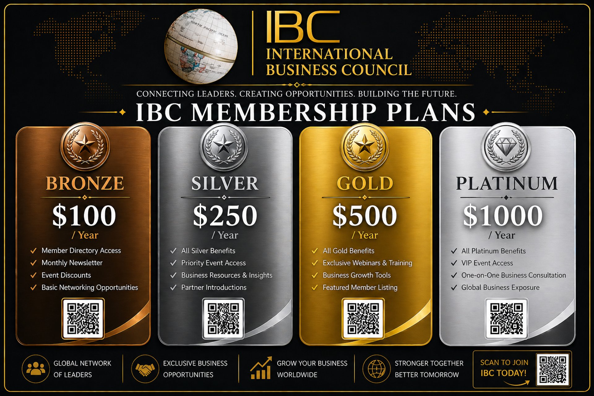 International Business Council (IBC) is a global business networking platform that connects companies, entrepreneurs, and investors worldwide.