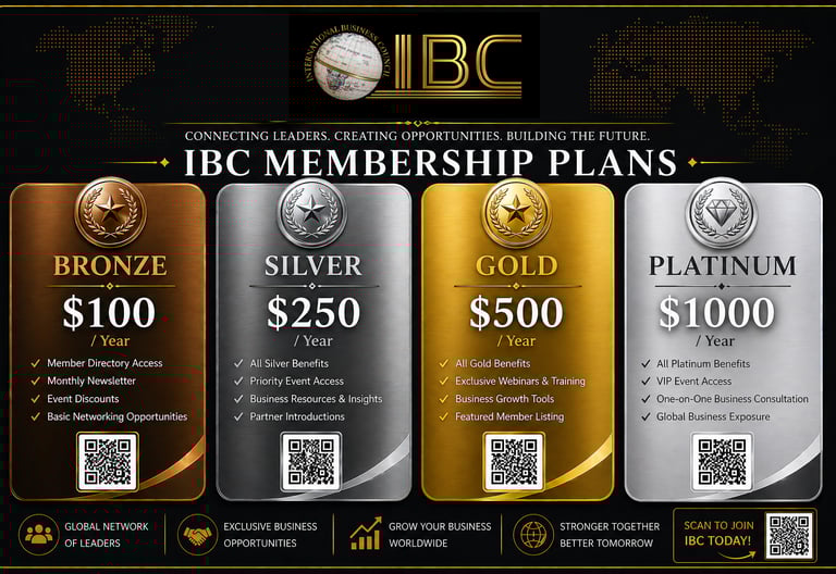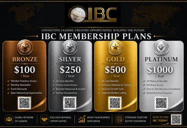 International Business Marketplace & Service Hub (IBC) is a global platform that connects companies, entrepreneurs, investors, and professionals in one powerful international network, combining a marketplace for buying, selling, and connecting with verified global businesses, a service hub offering IT services, consulting, marketing, and other business solutions, and a leadership network that builds authority and global recognition through business roles, making IBC a complete global business ecosystem where networking, services, and leadership come together.